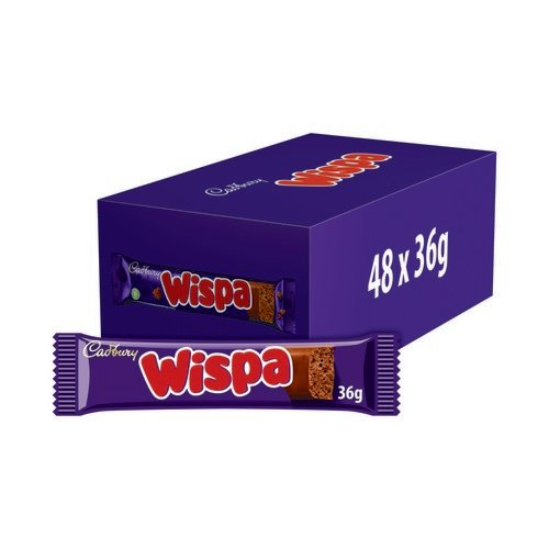 - Exceptionally light yet impossibly indulgent Cadbury Wispa is a delightfully velvety chocolate bar beautifully textured thanks to a bubbly centre coated in delicious Cadbury milk chocolate. Ideal as a snack to help get you through the day Wispa are suitable for vegetarians and this bulk pack contains 48 individual bars.