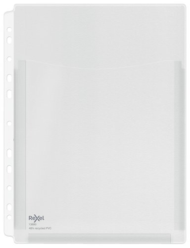 Rexel Nyrex heavy duty extra capacity A4 pockets have a multi-punched spine to fit most ring binders and a 20mm gusset to store large documents.
