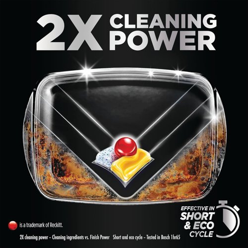 - Finish Ultimate All-In-One dishwasher tablets tackles dried-on stains, without the need to pre-rinse. The formula cuts through stubborn grease and grime, ensuring sparkling clean dishes and a brilliant shine every time. Designed to perform well in short and eco cycles, these powerful tablets save time and water whilst delivering superb cleaning results. The fast-dissolving technology activates quickly to work on even challenging loads, leaving dishes spotless with a citrus fragrance. Supplied in a pack of 48 tablets.