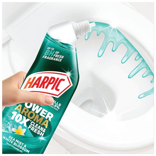 - Harpic Power Aroma is a dual-action toilet cleaning gel that provides up to 8 hours of fragrance while killing 99.9% of bacteria. The fast-acting gel kills 99.9 percent of bacteria for a hygienically clean toilet bowl. Targeting limescale and tough stains, the formula is supplied in an angled nozzle 750ml bottle for easy application under the toilet rim.