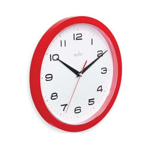 The Acctim Aylesbury Plastic Wall Clock is an economical wall clock with an eye-catching modern design. The bold modern typeface is easily legible against the white dial, as are the thick black hour and minute hands. A precision quartz movement helps ensure the best possible timekeeping. A sturdy plastic lens covers the 255mm dial and protects it from damage or tampering, while the bold plastic case provides a pleasing addition to your wall.