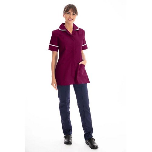- The DVDTR Female Nursing tunic is a timeless classic worn by millions of our nurses and carers across the UK. With PU lined pockets to protect from pen breakages, and a trim on collar and sleeves which is great to distinguish between job roles and departments.