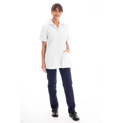 The DVDTR Female Nursing tunic is a timeless classic worn by millions of our nurses and carers across the UK. With PU lined pockets to protect from pen breakages, and a trim on collar and sleeves which is great to distinguish between job roles and departments.