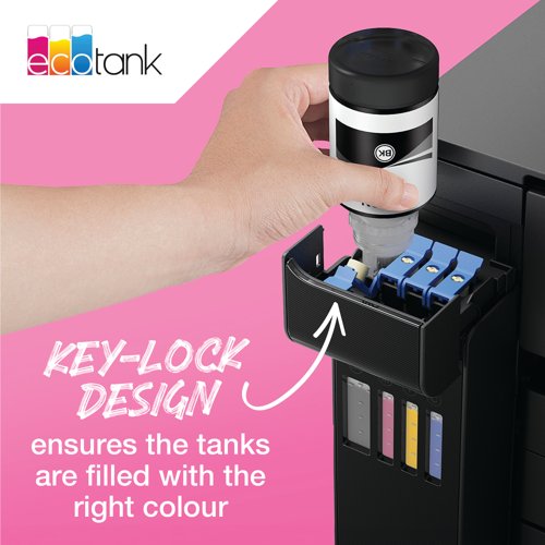 Enjoy great prints with clear text and vivid colours with this reliable and high-quality ink. The 113 ink series features all pigment inks to give you sharp prints that resist smudges and highlighters. As the pigment is quick drying, this ink is ideal for producing double-sided prints. Filling EcoTank is simple and mess free with the resealable, intuitive and drip-free ink bottles. Thanks to a special mechanism, these ink bottles only allow the correct colours to be inserted.