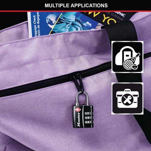 - Ideal for travel, this Master Lock Combination Padlock features a 3-digit resettable combination for enhanced security. TSA accepted for travel to the United States, the padlock has a strong 32mm wide steel shackle and robust black metal body for heavy duty, long lasting use.