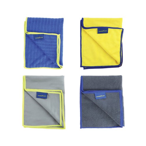 - The Goodyear Microfibre Cloth Set is specially designed for superior vehicle cleaning, featuring statically charged cleaning fibres that attract and hold dust and dirt more effectively than traditional cloths. Each cloth in this 4-piece set - Dashboard Cloth, Buffing Cloth, Window Cloth, and Wash and Dry Cloth - is tailored for specific cleaning tasks, ensuring a showroom finish every time. The advanced microfibre technology used in these cloths provides a high level of dirt attraction and absorption, making them ideal for achieving a spotless, streak-free look on your vehicle. The Dashboard Cloth gently cleans interior surfaces without scratching, while the Buffing Cloth is perfect for polishing and adding a high gloss. The Window Cloth ensures a clear, streak-free shine on glass surfaces, and the Wash and Dry Cloth is versatile for various cleaning and drying tasks. All cloths are machine washable, retaining their effectiveness and durability even after repeated use. This set combines convenience with professional-grade results, making it an essential addition to your vehicle care routine. Designed for hassle-free use, these microfibre cloths are easy to care for. They are quick-drying and retain their shape and cleaning properties after each wash, making them a reliable and practical choice for regular vehicle maintenance