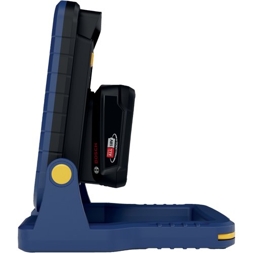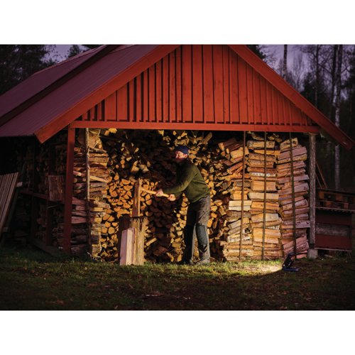 This cordless work light runs on an 18V battery, so you can work anywhere – in the garage, shed, attic, or other places without power outlets. The lamp head tilts up to 180°, making it easy to point the light exactly where you need it. The work light is easy to set up or hang using the built-in hook or handle.