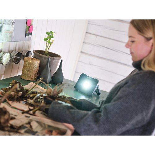The work light’s stable stand can be tilted for different light dispersions. The Portable also has a USB-A port if you need to use the light as a power bank for your discharged mobile phone, for example.